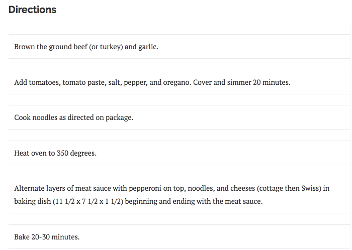 (This picture isn’t of my mom’s lasagna. It’s a Betty Crocker lasagna. I don’t have a picture because the food doesn’t last long enough for me to take one!)