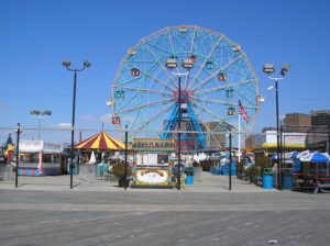 When Sam had finished her ice cream, she walked back toward the Wonder Wheel. So high up in the air, the cars looked like little red and yellow and little blue and yellow toy boxes. They swayed delicately back and forth as the giant wheel moved slowly and, it seemed to Sam, almost gracefully. Sam looked around at not only the giant Wonder Wheel in front of her but also at the lights and colors and faces. She felt the gentle breeze in her face as the melody of that exotic yet familiar music filled her ears. She placed her hand over her heart and couldn’t help but smile.